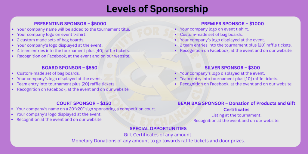 3.) Become a sponsor for the 2025 Corn Hole Tournament