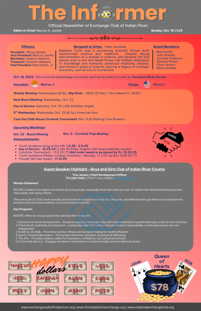 Exchange Club of Indian River | P.O. Box 93 Vero Beach, FL 32961